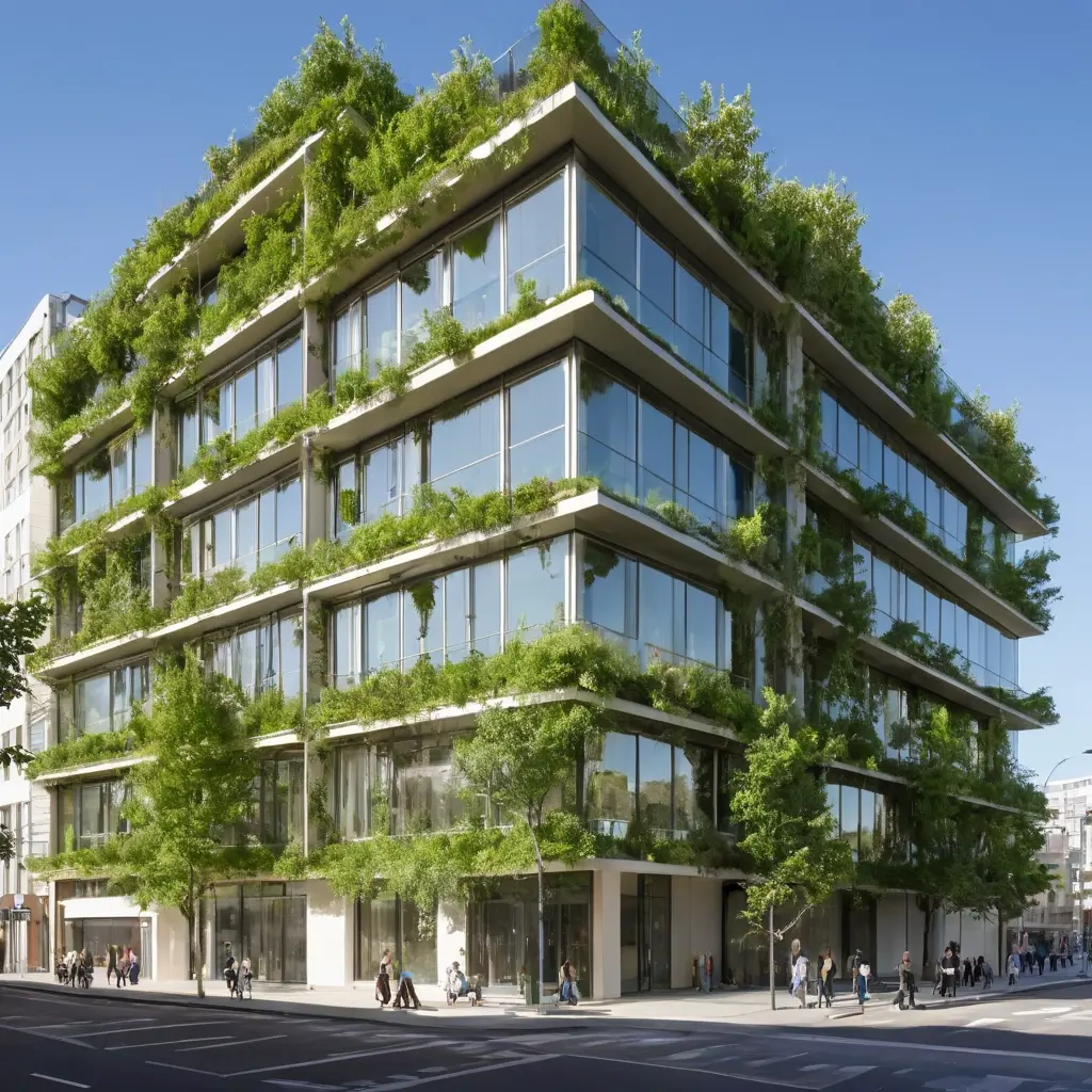 - Терморегуляция за счет растительности — зеленые элементы фасада задерживают солнечный свет и снижают тепловую нагрузку на здание.