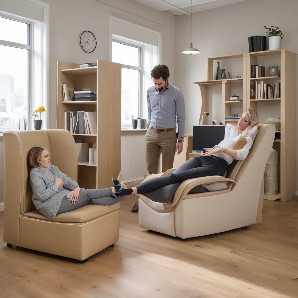 - Стулья с регулируемой высотой и наклоном спинки: обеспечивают правильную позу, снижая усталость при длительном сидении.