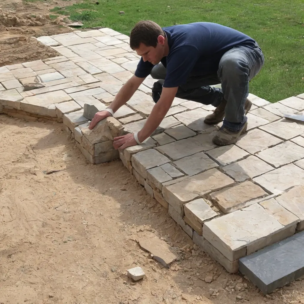 - Выравнивание: Использование уровня и резинового молотка для аккуратного размещения камня.
